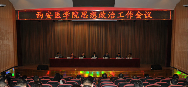 (宣传部)为及时传达学习全国及全省高校思想政治工作会议精神,分析、研判、部署当前和今后一个时期我校思想政治工作,3月15日下午,我校在未央校区学术报告厅召开思想政治工作会议,校党政领导范兵、杨帆、弥曼、黄保强、熊冬梅、李雪萍、张越林出席了会议,校本部处科级干部、党支部书记、附属医院党委书记和院长、思政部全体教师、全校专兼职辅导员参加了会议。会议由校党委副书记、院长杨帆主持。 会议现场 会上,党委书...