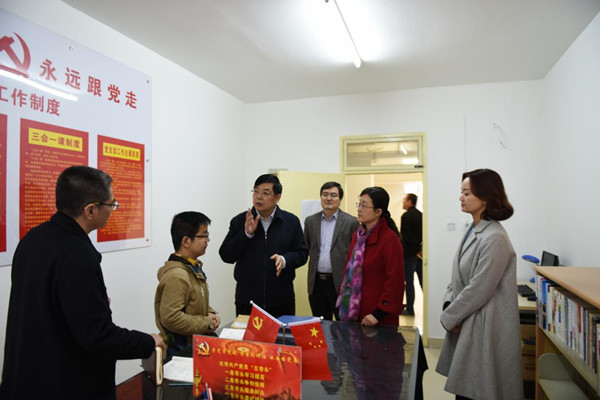 (宣传部)3月30日上午,我校党委书记范兵、党委副书记熊冬梅与组织部、宣传部、学工部、团委、后勤处、医学技术系等部门负责人前往学生生活区,对我校学生工作“五进”公寓情况进行调研。 党委书记范兵、党委副书记熊冬梅在党员活动室调研 调研中,医学技术系党总支副书记耿潇潇对本系学生工作进公寓情况进行了介绍。校领导逐一查看了医技系位于7号宿舍楼的创新创业工作室、辅导员工作室、党团活动室、尚善书屋等,对其日常运...
