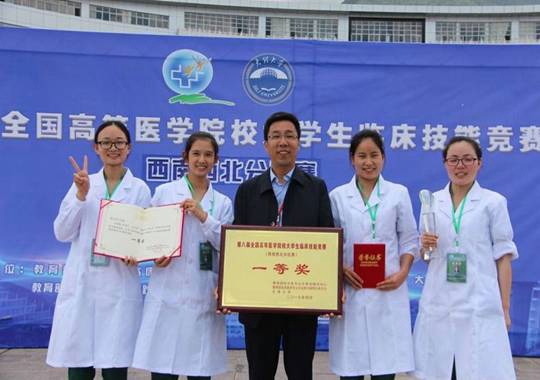 (临床医学院)2017年4月9日,由教育部主办,大理大学承办的第八届全国高等医学院校大学生临床技能竞赛西南西北分区赛在美丽的七彩云南大理胜利闭幕。本赛季由西南西北的17所高等医学院校的17支代表队参加,经过两天的激烈角逐,我校代表队发挥出色,荣获一等奖,位列西南西北片区参赛高等医学院校第三名(第一名、第二名为特等奖),获得第八届全国高等医学院校大学生临床技能竞赛总决赛的参赛资格。同时,赵瑞婷同学荣获最佳...