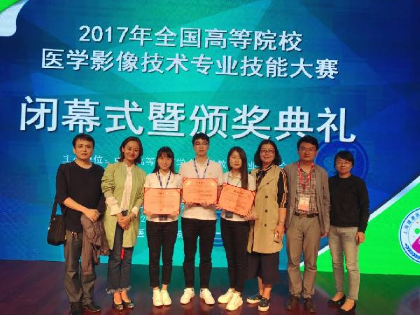 (医学技术系)2017年4月23日—26日,由中国高等教育学会医学教育专业委员会、中国卫生职业教育教学指导委员会、中华医学会影像技术分会联合主办的2017年全国高等院校医学影像技术专业技能大赛在上海健康医学院举行。我校参赛的3名选手全部获奖,其中李胜楠同学获本科诊断组二等奖,杨青青同学获本科DR组三等奖,王洋同学获本科CT组三等奖。 参赛选手和指导教师合影 今年,我校首次组队参加全国影像专业技能大赛,得到了各级领...