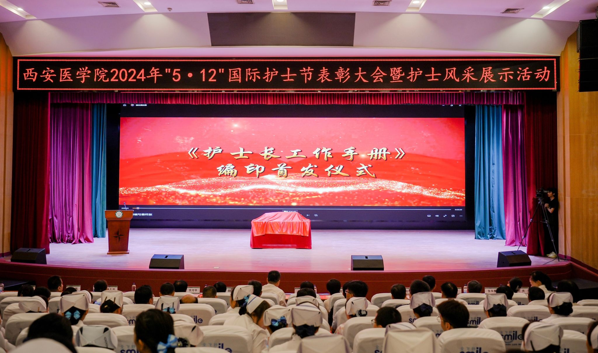 5月11日,我校在未央校区举办2024年5·12国际护士节表彰大会暨护士风采展示活动。省卫健委党组成员、副主任薛寒,省卫健委医政处处长刘娜,省护理学会理事长李武平,全体校领导出席大会。大会分为两个阶段,副校长李雪萍主持第一阶段会议。