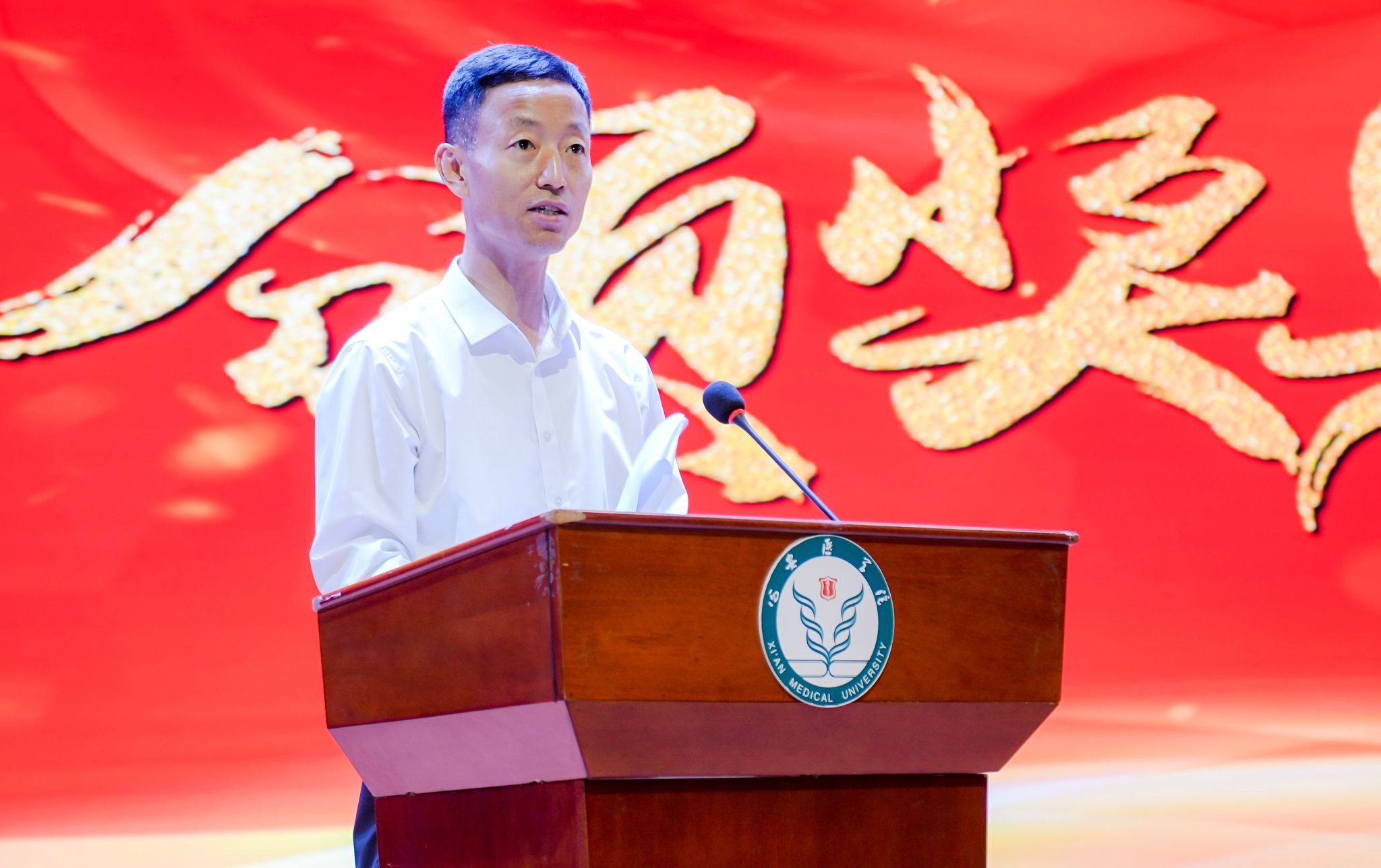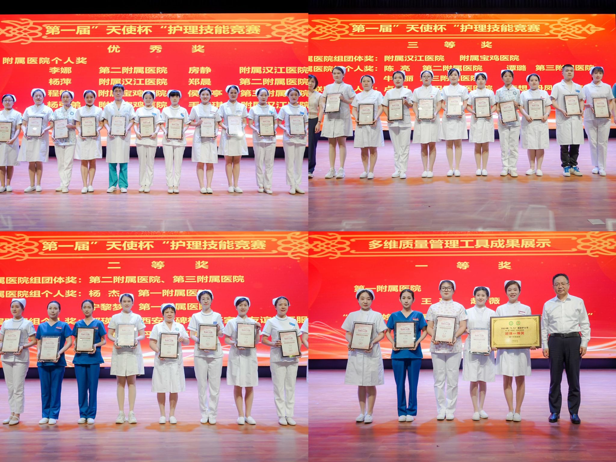 大会第二阶段为颁奖典礼,由第一附属医院刘金盘、第二附属医院李晓丁、第三附属医院柴进、附属宝鸡医院王艺璇及附属汉江医院杨颖共同主持。