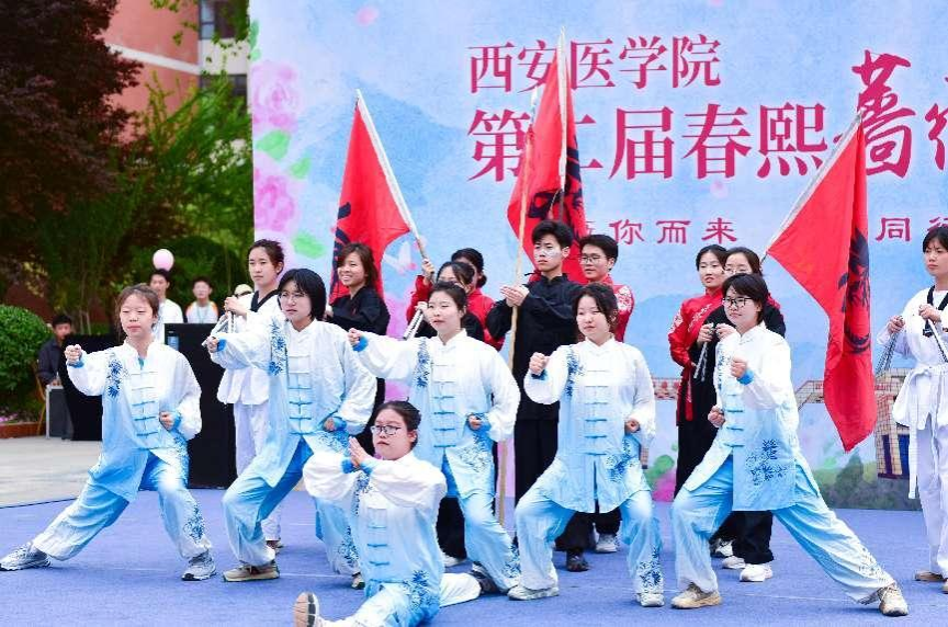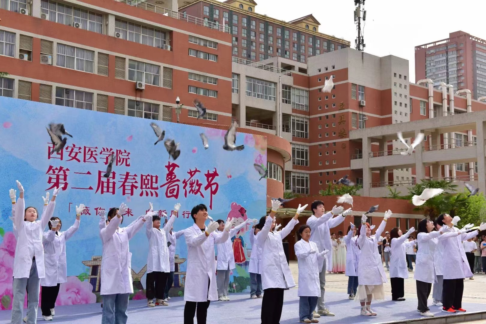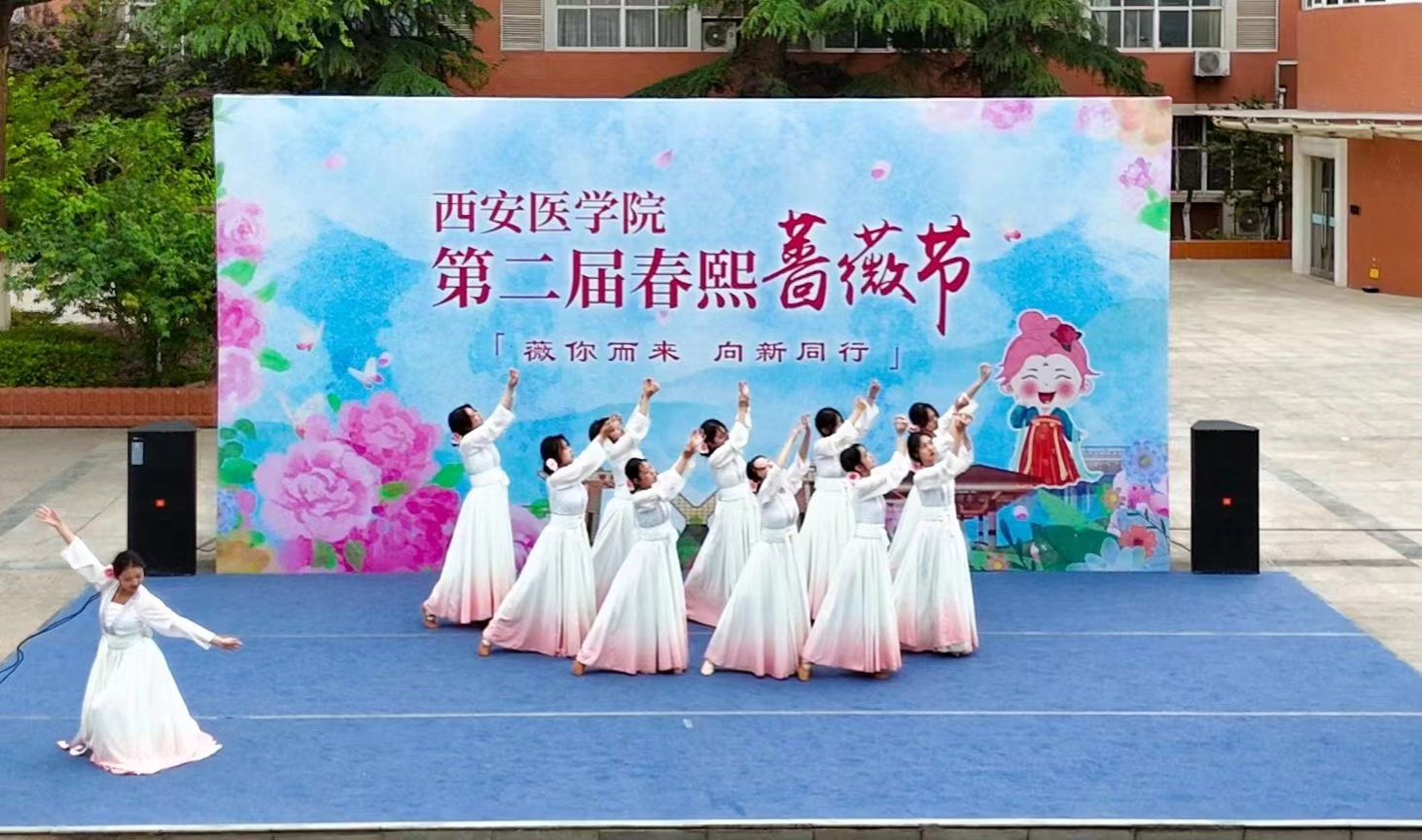 开幕式上,教师代表,长乐汉韵社、武术协会等学生社团成员带来了精彩的《薇悦唐韵》《卫生学校开创时昔日荷香沁心田》《状元媒》《武道盛宴》《春锦华裳》等节目,精彩的节目表演彰显了新时代西医人团结向上、拼搏进取、锐意改革的良好精神风貌。节目最后,在场师生一起放飞了和平鸽,共同庆祝第二届春熙蔷薇节开幕。