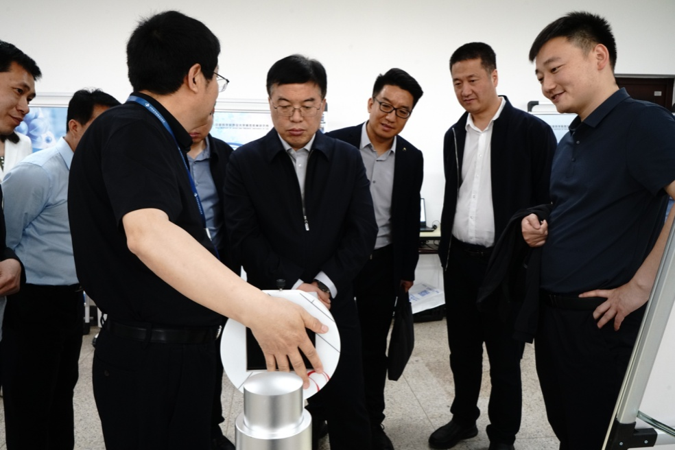 巩守平一行在西安光机所所长马彩文带领下参观了光机所发展沿革展台,了解了光机所自建成以来所取得的瞩目成就,深入实验中心听取了光机所各团队医工交叉创新科研成果,并亲身体验多部样机功能。