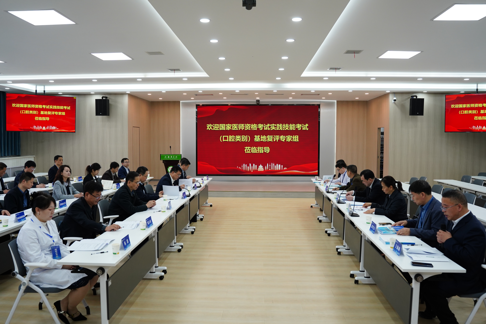 4月11日上午,国家医学考试中心专家组莅临我校高新校区开展国家医师资格考试(口腔类别)实践技能考试基地的复评工作,审核评估专家组组长、国家医学考试中心副主任胡荣波一行通过听取汇报、实地考察、模拟考试等方式,对我校口腔类别实践技能考试基地进行了全面考核评估。陕西省卫生健康委二级巡视员杜敏致欢迎辞。陕西省卫生健康人才服务与外事交流中心主任王康利主持汇报会和反馈会。校党委书记刘岭,党委副书记、副校长巩守平,党委副书记姚文柱出席。