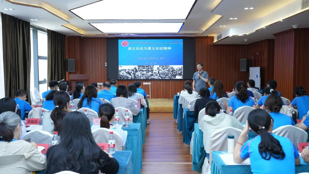 开班仪式后,遵义市委党校韦生彬教授以“遵义会议与遵义会议精神”为题作专题报告。他从遵义会议召开的历史背景、召开经过和内容、会议精神解读、历史启示四个方面对遵义会议进行详细讲解,帮助全体教师准确把握会议脉络、深入了解会议细节、深刻理解遵义会议与遵义会议精神实质,又一次加深对遵义会议伟大转折历史价值深刻感悟。
