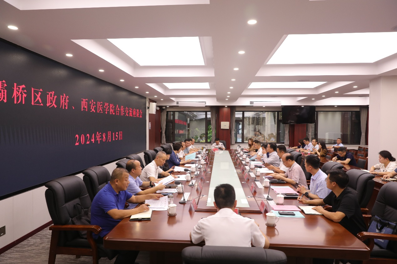 为深入贯彻落实中共二十届三中全会精神,全面深化改革,推进校地间医教研战略性协作强大合力,高质量服务区域经济社会发展。8月15日上午,校长巩守平带队赴西安市灞桥区人民政府就探索校地合作新模式,实现高校与政府间资源要素的优化互通和更好流动、直属附属医院高质量发展等问题进行交流探讨。灞桥区委副书记、区政府党组书记、区长苏晓梅,副区长孙见林出席会议。灞桥区卫健局、区住建局、区城管局、资源规划灞桥分局、交警灞桥大队、区消防大队、纺织城街道办事处主要负责同志、公安灞桥分局分管负责同志等出席会议。孙见林主持会议。