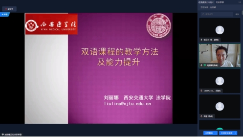 会议第二阶段为双语教学能力提升培训,由西安交通大学刘丽娜副教授主讲。她以“双语教学的难点和实践方法”为主题,依托深厚的专业背景和丰富的教学经验,深入剖析了双语教学的基本情况、当前双语教学存在的重点与难点,并分享了自己在双语教学实践中的宝贵经验和深刻体会。提升了我校教师对双语教学理念的理解、增强了教师实施双语教学的信心,并为教师提供了切实可行的解决方案和实践策略。