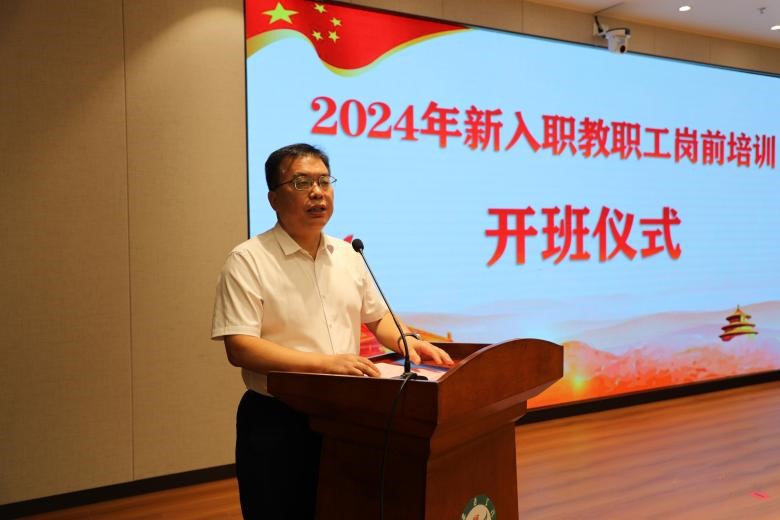 为使我校新入职教职工尽快做好角色转换,树立正确教育教学理念,加强师德师风修养,了解学校相关政策和规章制度,助力个人快速成长,9月10日至9月14日,学校组织开展2024年度新入职教职工岗前培训。10日上午,岗前培训开班仪式在未央校区举行,校长巩守平出席并讲话,副校长和新盈主持。