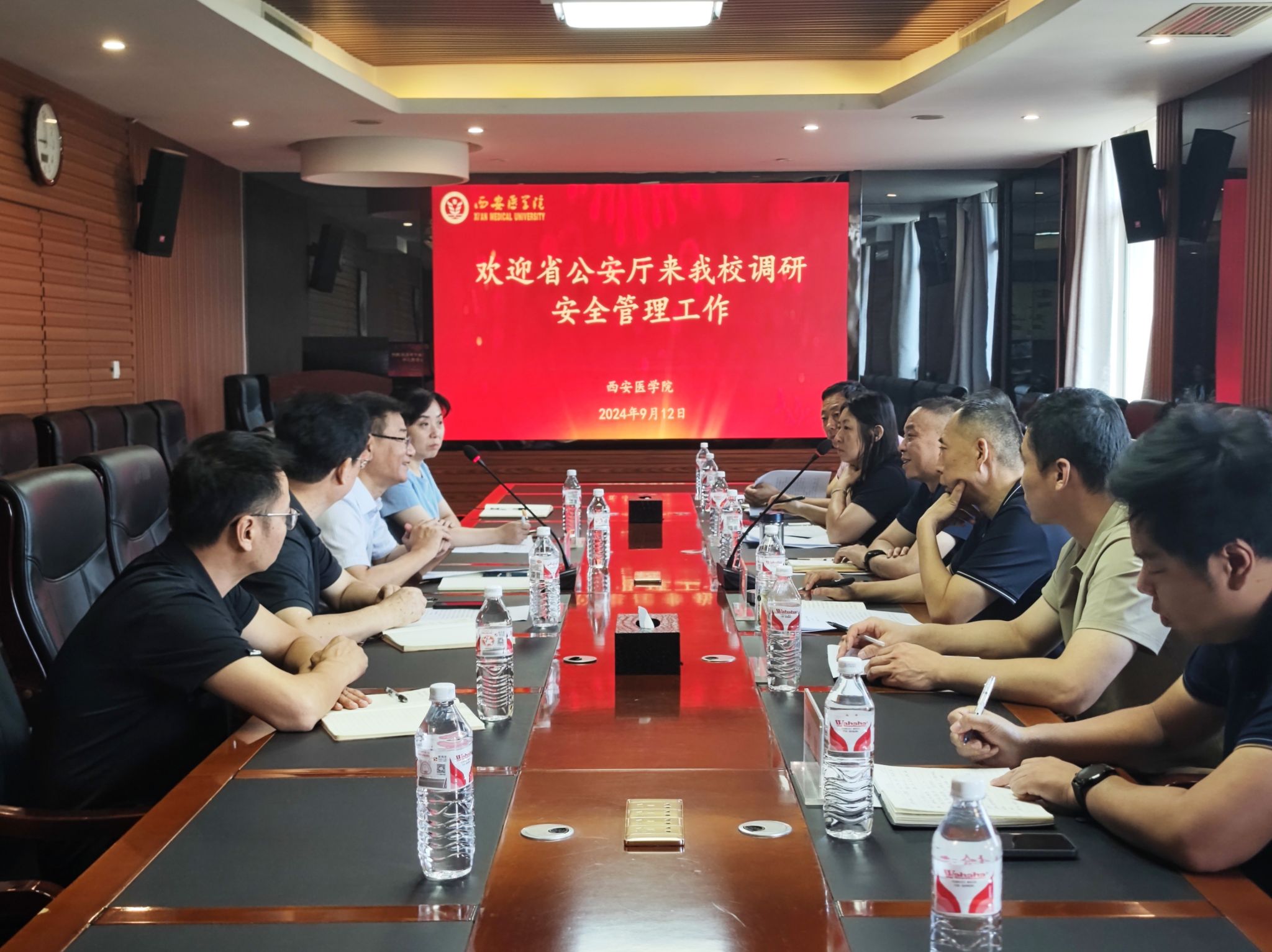 西安市公安局文保支队、未央分局国保大队负责同志结合工作实际,分别对学校政治稳定、校园周边综合治理等提出了指导性意见和建议。与会双方围绕校园交通安全、应急事件处置等问题进行了深度交流。