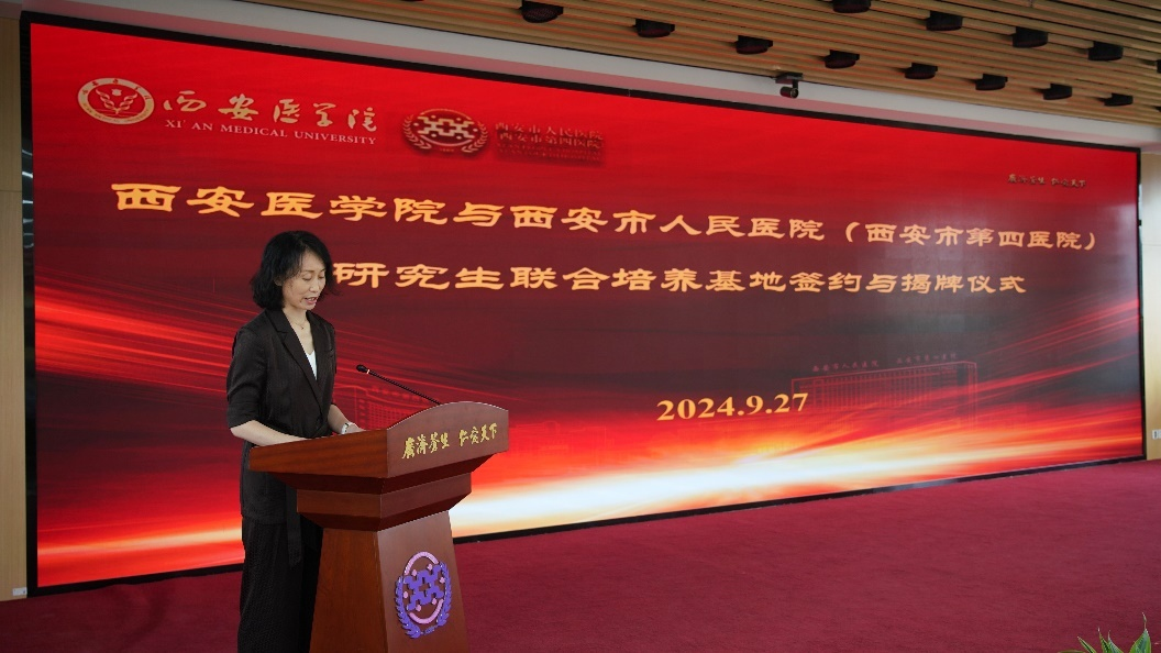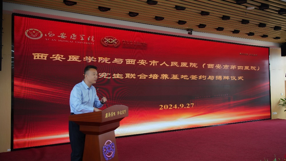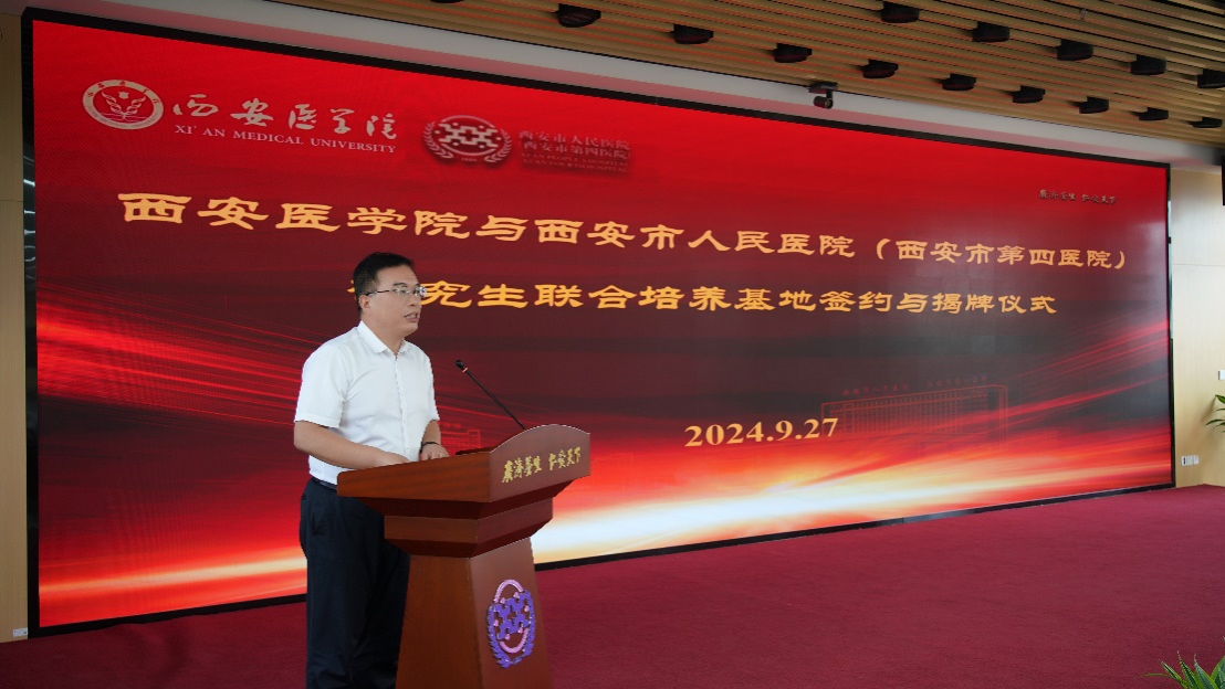 巩守平在讲话中向与会同志介绍了建校73年来的办学历程,以及研究生培养情况,表示西安市人民医院成为我校研究生联合培养基地将会助推研究生教育高质量发展。他提出几点希望:一是抓好基地建设。要以高起点、高要求开展研究生联合培养工作,注重质量,强化措施,共同培养素质高、技能强的医学人才。二是建强导师队伍。明确导师第一责任人的担当,认真履行立德树人根本任务,引导学生树立正确的医德医风,培养研究生的临床思维、实践以及科研创新能力。三是遵守各项制度纪律要求。研究生们要严格按照学校和医院双重管理要求,认真学习,刻苦钻研,做医德高尚、医术精湛的医学生。