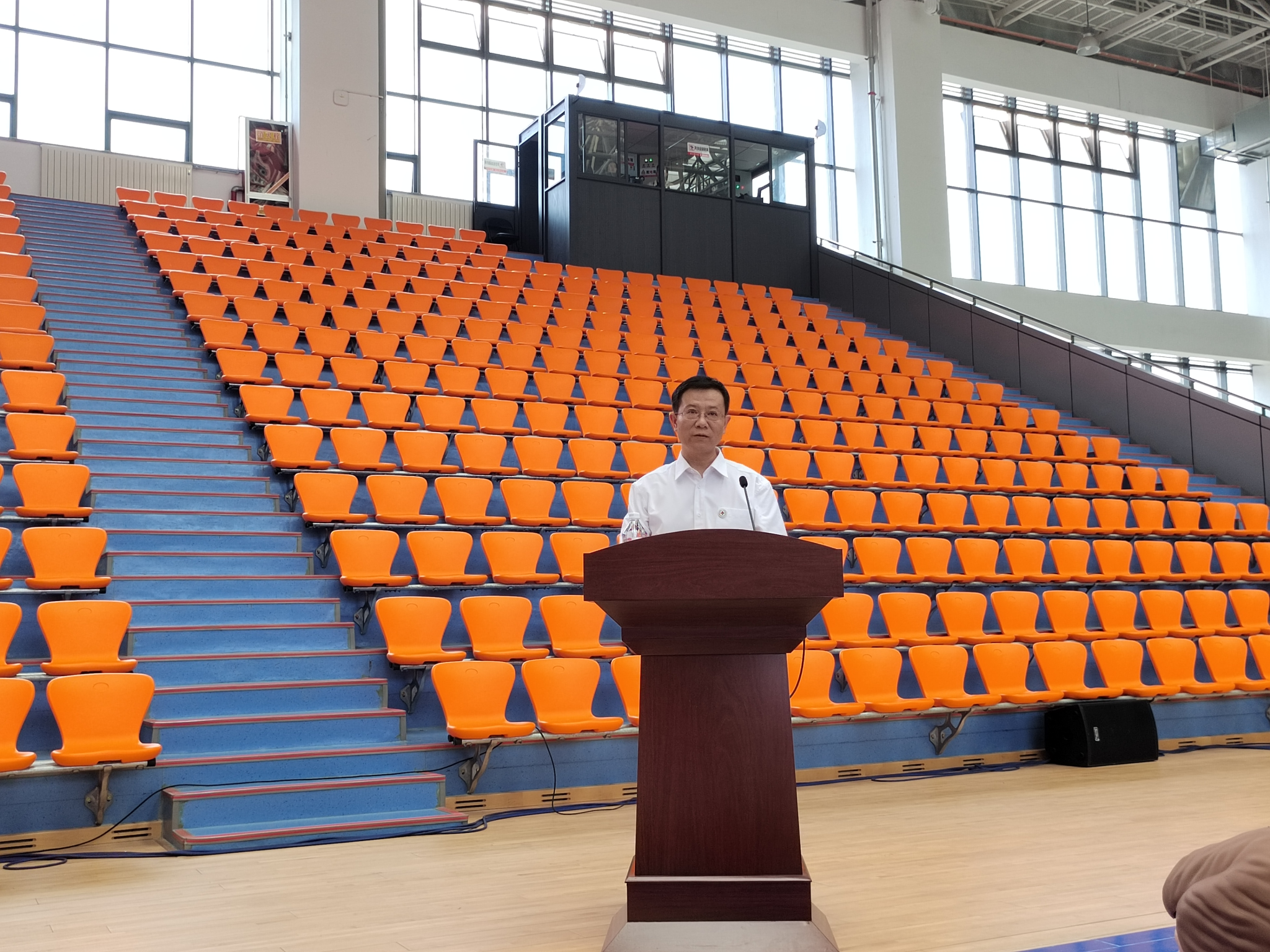 刘国进介绍了红十字会的基本情况以及培训的重要性,高度赞扬了我校为推动应急救护知识普及做出的积极贡献。他提出三点要求:一是积极落实关于进一步推进学校应急救护工作的通知;二是启动生命教育工程,增强学校软实力,总结急救教育试点经验,形成一套可复制、可推广的校园急救教育模式,为文明校园、平安校园建设贡献力量;三是发挥社团平台作用,将红十字会服务内容与社团深度融合。