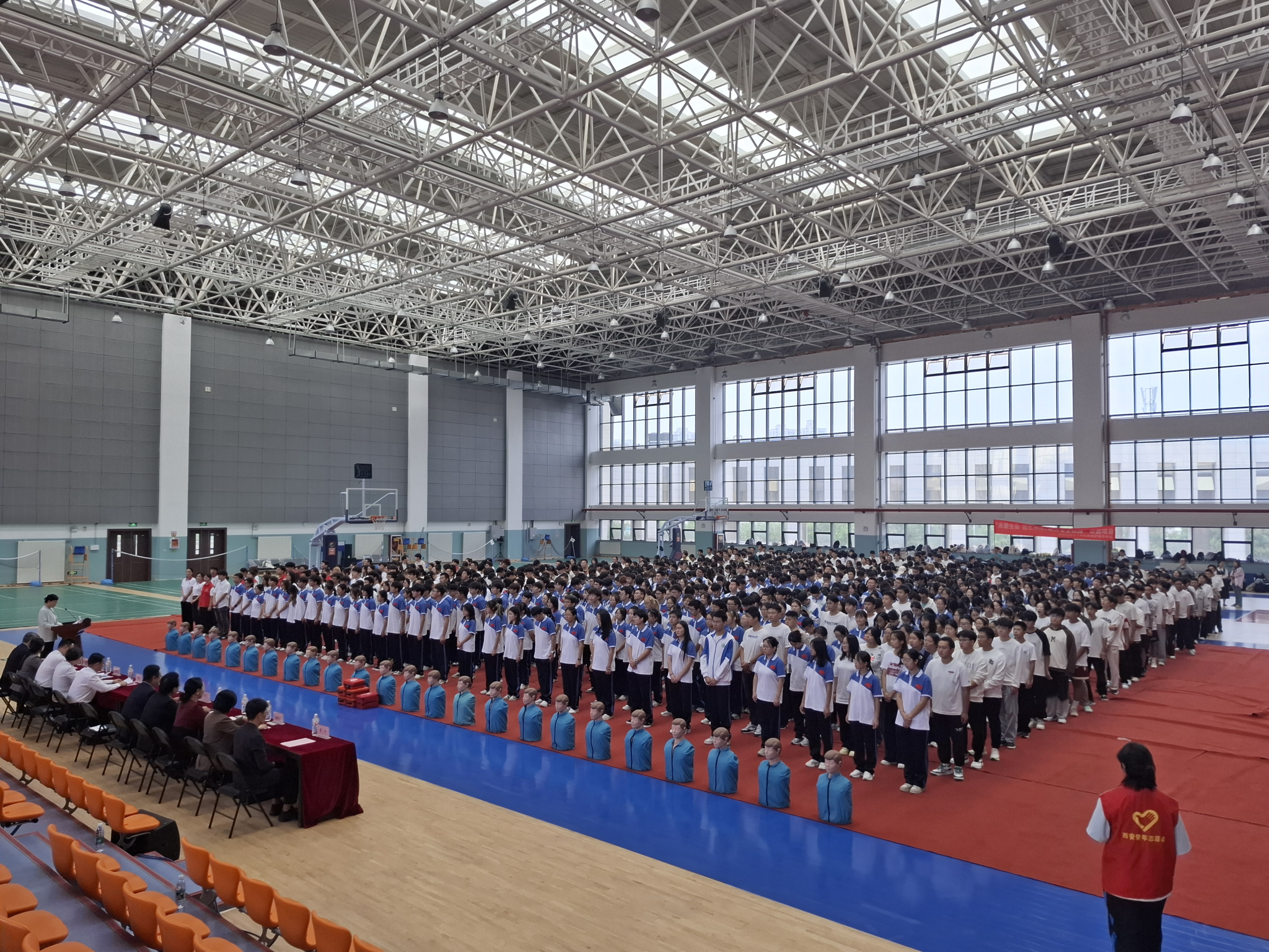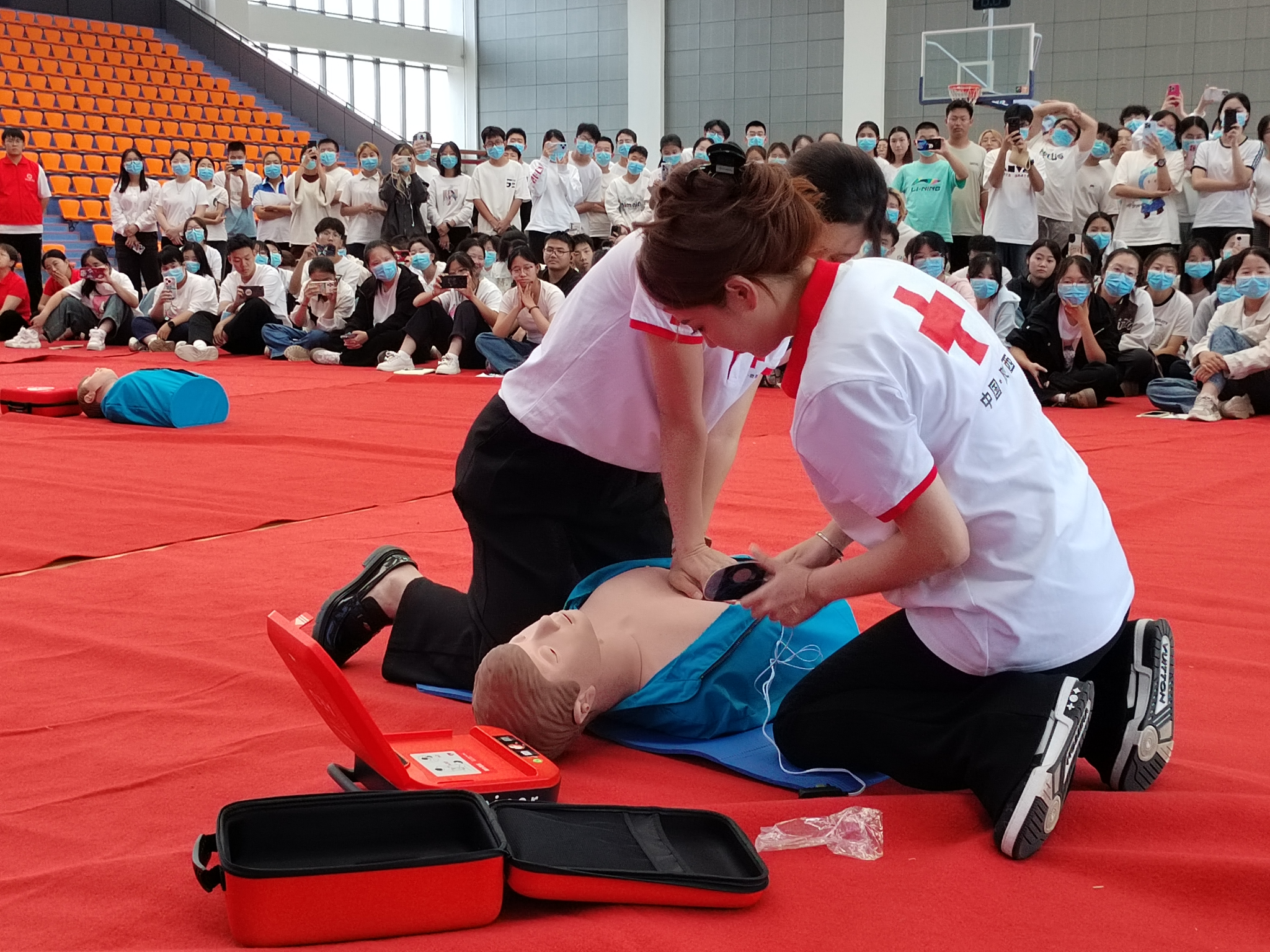 三天培训共有1500余名学生参加。陕西博爱红十字会应急救护服务中心的专业讲师,通过生动的案例讲解、理论讲授、实操演练等方式,深入浅出地传授了应急救护知识和技能,同时结合国家政策要求,强调了应急救护知识在保障人民生命安全和促进社会和谐稳定中的重要作用。参加培训的学生们纷纷表示,通过学习受益匪浅,不仅熟悉了基本应急救护知识,更增强了自身社会责任感和使命感。参训学员通过理论和实践考试,均获得陕西省红十字会CPR+AED合格证书。