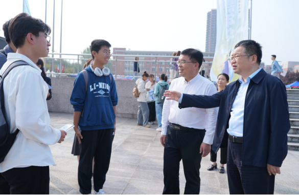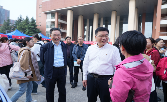 在首届生涯嘉年华活动中,校领导与学生亲切交流,了解就业育人活动开展情况,对大学生职业生涯规划的全员全过程全方位模式给与充分肯定和鼓励。