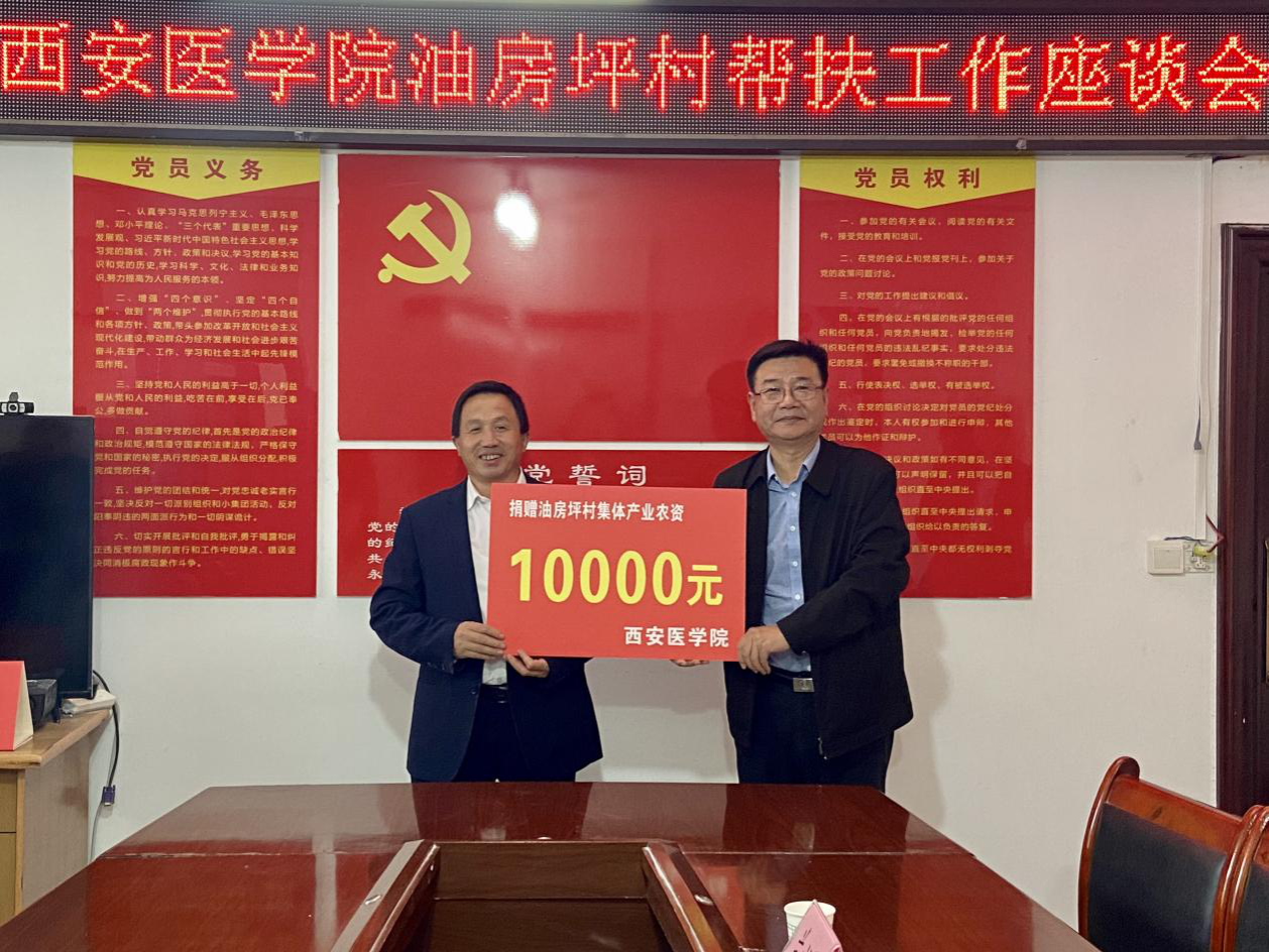 立足增收创效,做深产业帮扶。产业振兴是激发乡村内生发展动力的源泉,更是乡村全面振兴的基础和关键。为进一步支持产业发展,壮大集体经济,座谈会后,姚文柱和田民政分别代表学校向油房坪村捐赠物资用以发展桔梗种植等特色产业。该产业将与现有光伏产业结合,农光互补,实现土地复合利用,产业落地后预计吸纳带动120名村民务工就业,并于三年后实现集体经济增收20余万元。今年以来,学校已累计投入产业帮扶资金3.5万元,按照工作方案及帮扶协议要求,学校将着眼村内产业多元化发展,拓宽集体经济增收渠道,确保产业帮扶工作走深走实。