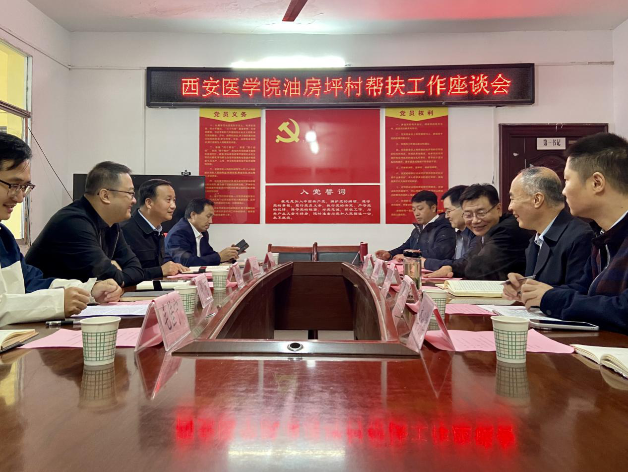 聚焦急难愁盼,做好结对帮扶。姚文柱一行首先在油房坪村与县镇政府领导及村委干部进行了座谈,听取了驻村干部关于学校2023年帮扶工作的汇报及油房坪村近年来发展情况。马磊对学校长期以来的倾情帮扶予以赞赏,希望双方加强沟通交流,不断提升帮扶质效。田民政结合自身驻村扶贫工作实践,建议村内产业加强品牌意识,注重品质提升,谋求高效发展。姚文柱对丹凤县各级党委、政府的关心与支持表示感谢,表示学校将持续依托自身优势,用心“结对”,用爱“帮扶”。他要求驻村干部严明工作纪律,发挥职业优势,加强政策宣传,确保各项帮扶工作紧密衔接、有序推进。