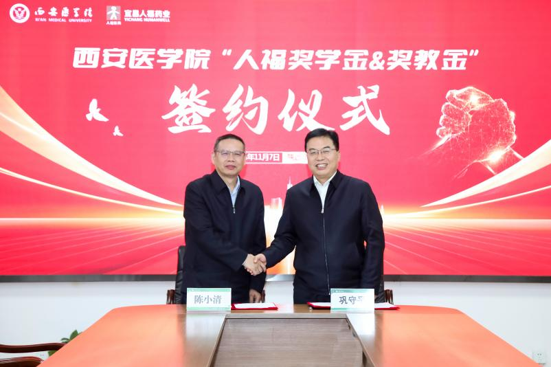 11月7日,我校与宜昌人福药业有限责任公司举行“人福”奖学金及奖教金签约仪式。校党委副书记、校长巩守平出席会议。人福药业副总裁陈小清、豫陕大区总监周华荣、陕西省区经理汤晓聪等参加会议,会议由学校发展规划处处长张静主持。