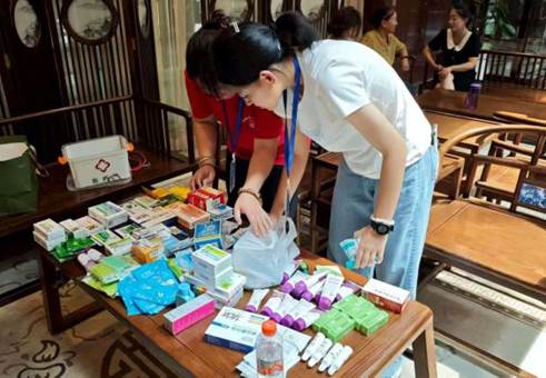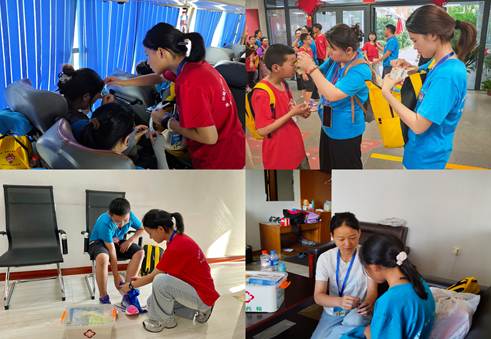 7月22日下午,志愿者们开启忙碌而有序的准备工作,认真清点药品,细致落实接机的各项准备工作,精心安排住宿事宜。在接机途中及入住后,志愿者为晕车的孩子涂抹清凉油并进行穴位按压;为紫外线过敏的孩子及时涂抹芦荟胶;将突发急性肠炎学生第一时间送往就医,确保他们得到及时治疗。
