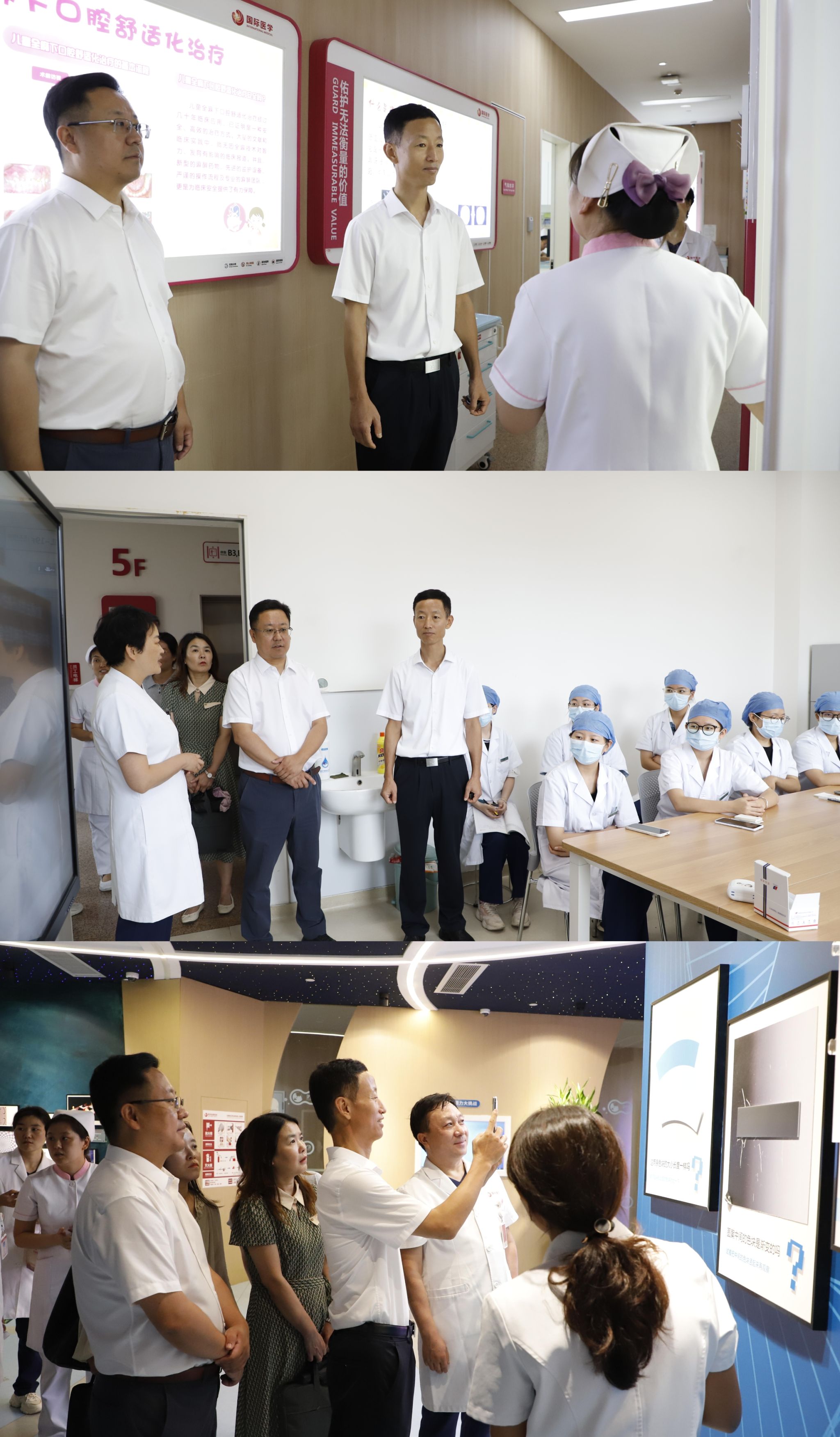 揭牌仪式后,杨卓虎一行实地参观了医院市级眼科学教育科普基地、口腔科、心理咨询中心,学生宿舍、自习室等教学和医疗场所,并在临床科室与我校实习生交谈。
