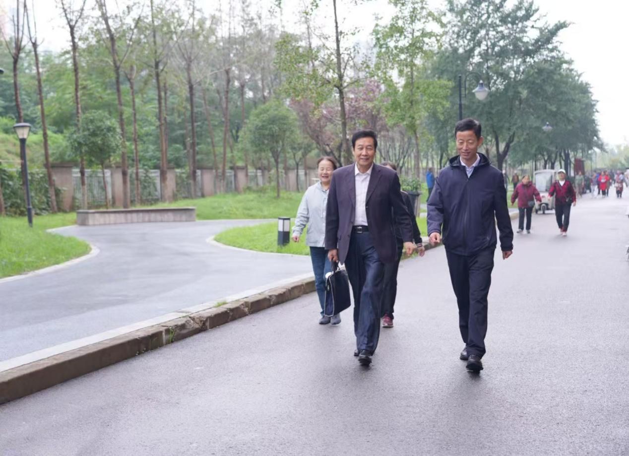 启动仪式结束后,健步走活动即刻开启,杨卓虎与老同志们一同参与,大家精神饱满一路前行,一边欣赏校园美景,一边畅谈生活趣事,欢声笑语随微风扩散,既舒展了筋骨,更拉近了距离。