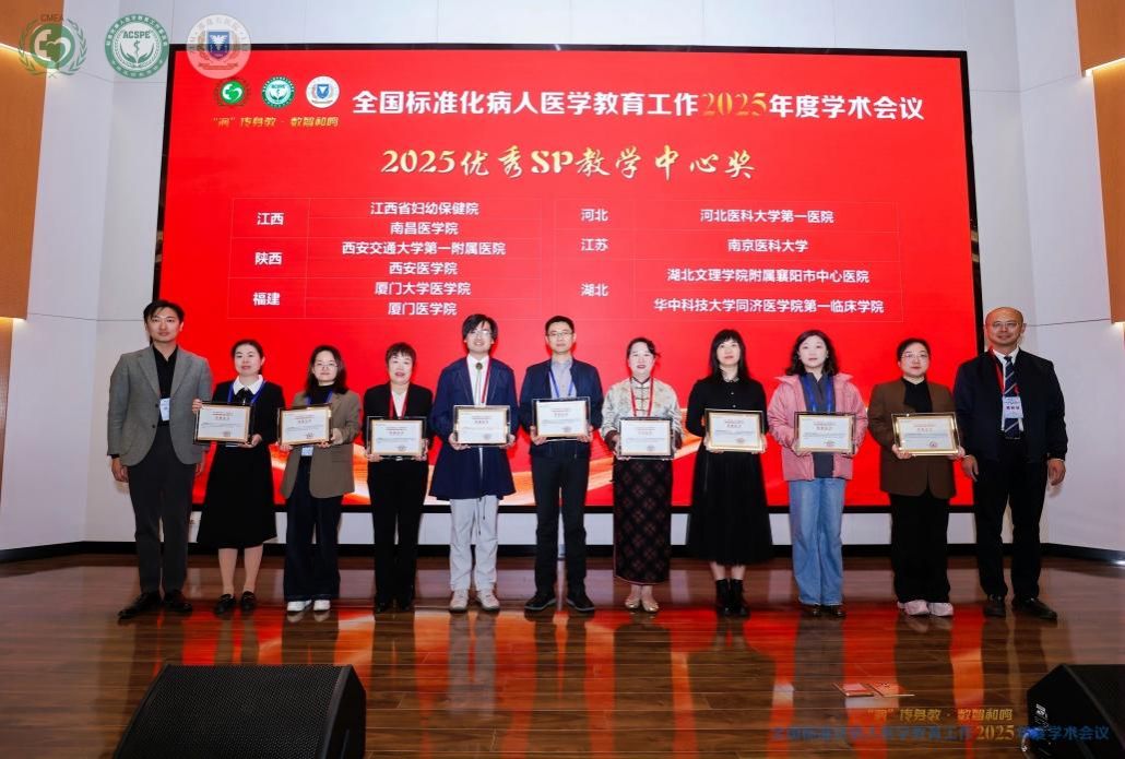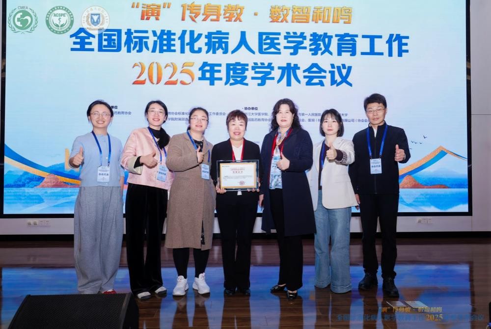 11月14日至16日,以“‘演’传身教 数智和鸣”为宗旨的全国标准化病人医学教育2025年年会在杭州圆满落幕。本次大会由中国医药教育协会主办,中国医药教育协会标准化病人医学教育工作委员会、浙江大学医学院附属邵逸夫医院联合承办,吸引了来自全国各地医学院校与医疗机构的SP教育领域权威专家和骨干力量共同参会,围绕SP医学教育的创新发展展开深入交流与探讨。我校在会议上凭借多年以来在标准化病人(SP)医学教育领域取得的成效,成功获评“全国优秀标准化病人(SP)教学中心”荣誉称号,与四川大学华西第二医院、首都医科大学附属北京儿童医院、南京医科大学、西安交通大学第一附属医院等多家国内知名单位共同入选,标志着学校SP教学建设迈入全国领先行列。