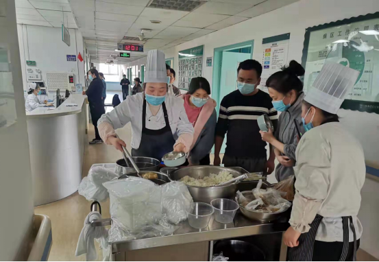 食堂在保障全院日常餐品供应外,教职工餐厅为手术室、介入室、发热门诊等科室进行餐品配送服务;营养餐厅紧急购置送餐车,实现送餐到病区,确保住院部患者、陪人等用餐需求。另外,食堂对食材进行充足备货,全力保障全院疫情防控工作顺利进行。