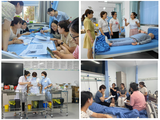 秣马厉兵,砥砺奋进。学校将此次竞赛作为锤炼青年教师临床护理技能、促进护理教师专业实践教学能力提升的一次大练兵。为备战此次比赛,护理与康复学院牵头开展系列赛前准备工作,举办学院专任教师和临床兼职教师技能大赛动员宣讲活动,遴选徐娜、胡健薇和骆婷组成我校参赛队,并取得全国比赛参赛资格;学院领导、指导教师团队和护理实验中心多次研究部署,制定详细的赛前培训计划为参赛选手提供充分支持和保障;在第二附属医院护理部鼎力支持下,派出备赛经验丰富的刘会玲副主任护师、李小强副主任护师、赵赞利副主任护师、邓文娟主管护师、景淑敏主管护师、周珂涵主管护师参与培训相关工作;最后在赛前安排多场模拟比赛,邀请多名专家现场观摩和点评。