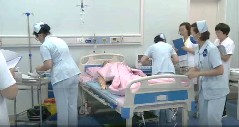 本次竞赛采用临床情景模拟方式,三名选手在赛场内共同对一位患者实施护理,重点考查选手的技术操作能力、知识应用能力、临床教学能力、分析问题和解决问题的能力及人文关怀素质。