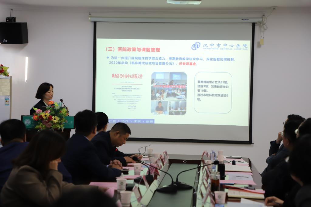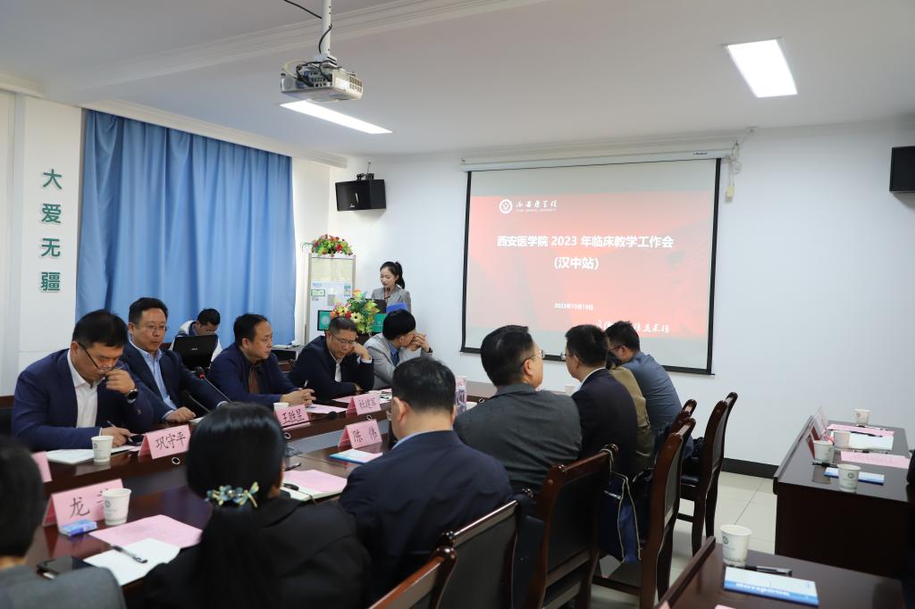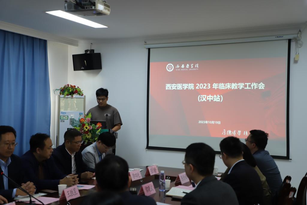 王胜昱介绍了学校在汉中地区实习见习学生分布以及学校临床教学管理的组织体系。三所附属医院院长、教师代表、学生代表分别从教学管理、课程教学及学生发言,即“管--教--学”三个层面进行交流汇报。