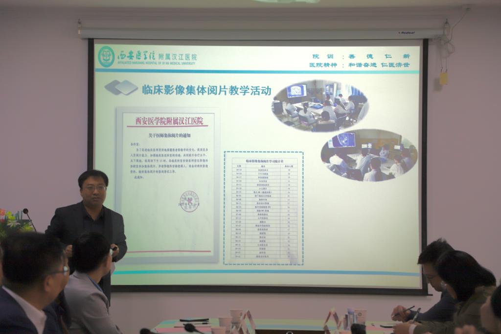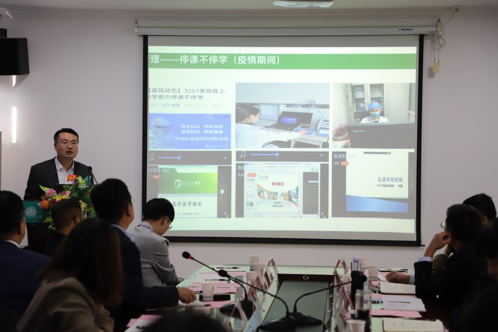 附属汉江医院李凯院长围绕医院如何规范临床教学查房,临床小讲课与读书会实践探索,以及医院思政教育与法规培训等方面作题为《苔花如米小也学牡丹开》的交流汇报;附属汉中市中心医院陈建华院长以《院校携手共育英才-临床教学工作汇报》为题,重点从对本科生教育教学的运行管理,如何高效开展临床教学病例讨论和集体备课,以及实习生考研上线率逐年增加的先进经验等方面汇报交流;附属三二〇一医院陈伟院长作题为《三二〇一医院教学工作汇报》重点从临床师资的培养培训、医院教学条件、学生管理、实训中心建设及规范化培训、教学科研等方面的显著成果进行了汇报交流。三位院长结合各自医院实际,立足岗位、找准定位,为探索更为科学有效的临床教学、临床见习、临床实习管理模式,持续完善实践教学管理和质量监控体系献言献策。纷纷表示医院只有重视教育教学工作,教学相长,努力提升本科生培养质量,医院才会有更好的未来和发展。