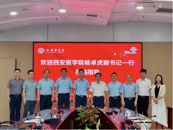 杨卓虎围绕历史沿革、办学理念、学科建设、人才培养、师资力量、实习就业等方面介绍了我校的基本情况,并对陕西联通长期以来关心支持我校事业,尤其是在2024陕西数字教育大会期间给予学校的支持表示感谢。他指出,联通作为大型央企,积极拓展数字化、智能化等新赛道,产业价值和社会贡献度不断提升,彰显了联通“国家队、主力军、排头兵”的使命担当。他表示,新时期学校建设一流医科类大学迫切需要陕西联通在智慧医疗、虚拟仿真应用等方面的高精技术合作和支持,希望与陕西联通在校企合作、服务社会等方面打造更广领域、更高层次的合作。