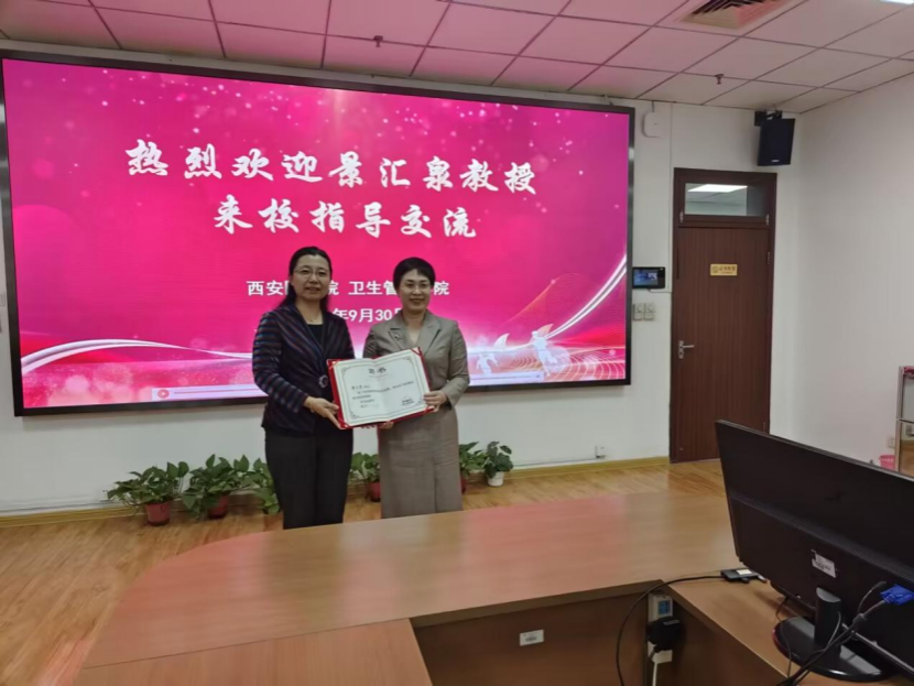 和新盈对景汇泉访校开展学术交流表示热烈欢迎,向她对卫生管理学院健康服务与管理专业建设一直以来给予的大力支持表示感谢。她指出,在全国教育大会上,习近平总书记站在党和国家事业发展全局的战略高度,系统阐释了教育强国的科学内涵和基本路径,指出我们要建成的教育强国,是中国特色社会主义教育强国,应当具有强大的思政引领力、人才竞争力、科技支撑力、民生保障力、社会协同力、国际影响力,为以中国式现代化全面推进强国建设、民族复兴伟业提供有力支撑。教育部《服务健康事业和健康产业人才培养引导性专业指南》要求高校聚焦服务健康中国和教育强国战略,面向世界科技前沿、面向经济主战场、面向国家重大需求、面向人民生命健康,加快布局建设一批具有适应性、引领性的新医科专业,加快培养急需紧缺复合型人才,更好地服务健康事业和健康产业发展。本次医疗健康创新发展路径学术会议即是我校贯彻落实全国教育大会精神及教育部文件精神的具体举措。希望卫生管理学院紧抓合作契机,把握健康事业和健康产业发展新态势,为学校人才培养汇注更多力量,助力教育事业高质量发展。随后,和新盈向景汇泉颁发了特聘教授聘任证书。