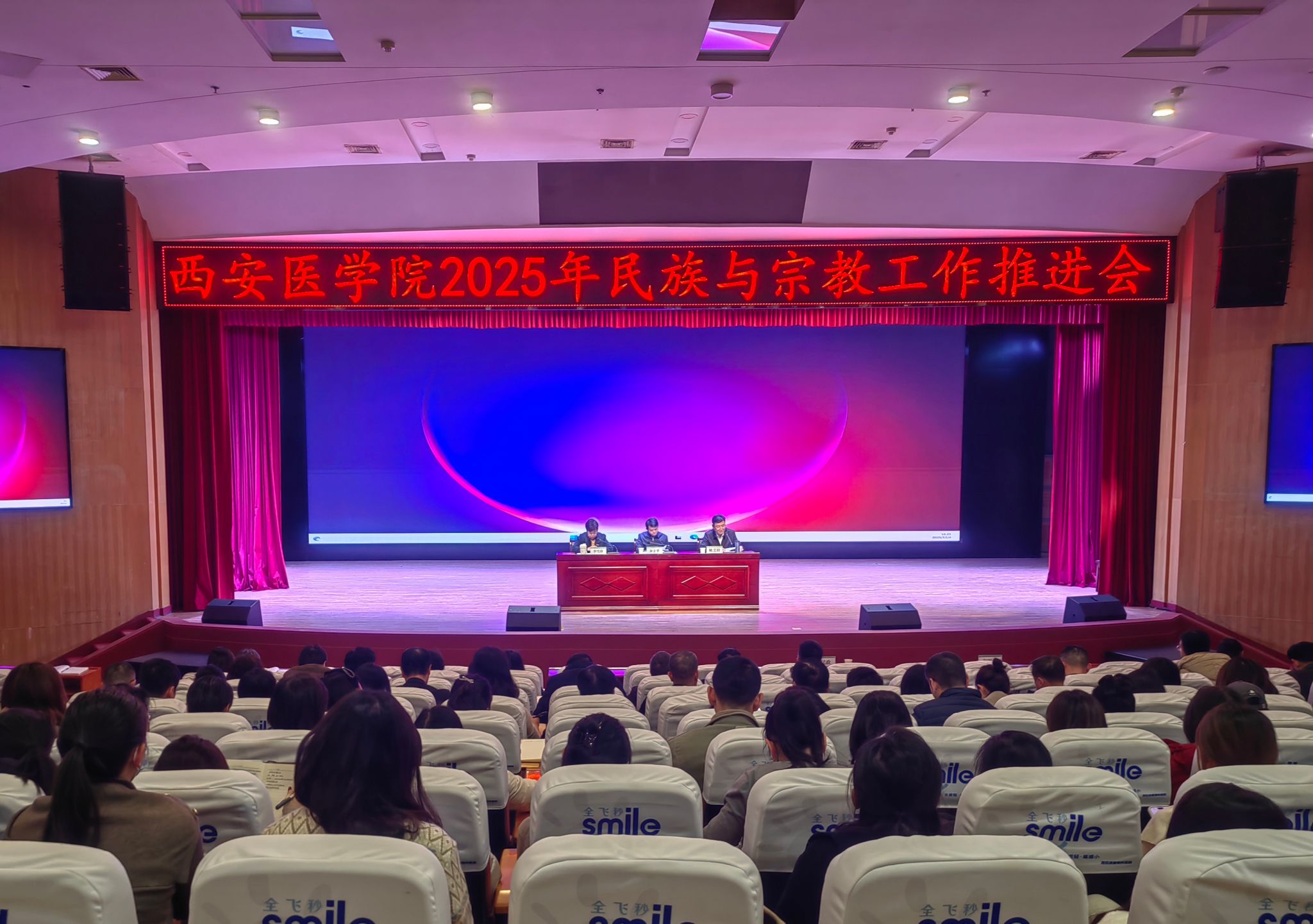 学校民族宗教工作领导小组成员单位负责人、各二级学院党总支书记、各附属医院党委书记、学工部与研工部民族专干以及全体辅导员参加会议。