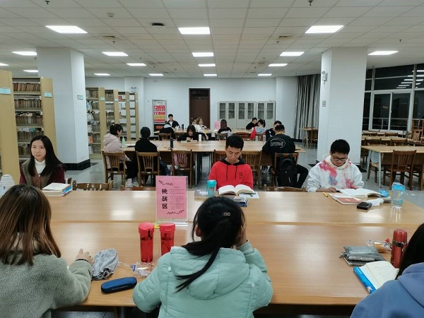 在这个数字化、碎片化阅读蔚然成风的时代,挑战阅读10小时活动用新颖方式和具有仪式感的比赛,创造一个远离网络和手机的身临其境的阅读空间,考验了同学们的定力和自控力,鼓励同学们远离碎片化浅阅读,也让同学们完成了一次美好的深度阅读体验,感受到经典阅读之美。(图书馆 文/萨一娜 田原 图/苏凡)