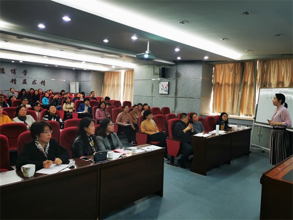 张明明教授的精彩讲座赢得了阵阵掌声。首先,张教授为大家全程演示了参赛获奖作品,随后她详细为大家讲解了如何从切(定内容)、搓(凝目标)、琢(精设计)、磨(细加工)四个方面,精心打磨参赛作品,全面提升教学能力。在交流环节,就大家关心的问题,张教授毫无保留地分享了自己的心得体会。