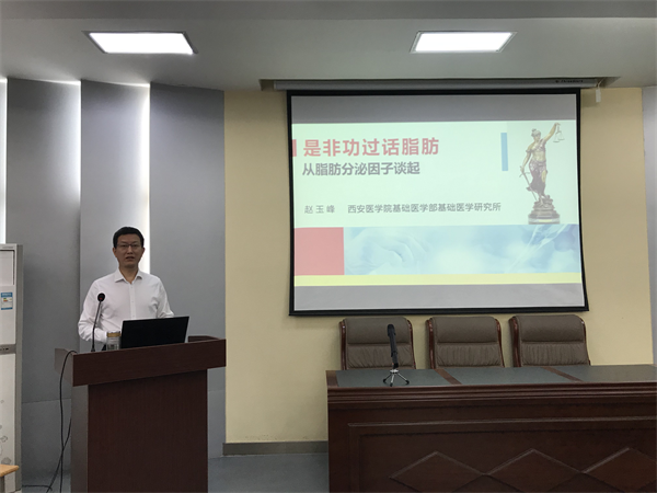首先,赵玉峰教授结合自己的研究内容,生动地向各位老师阐述了脂肪的相关知识。通过一个个问题,一幅幅生动的图片,将原本晦涩的科学知识变得生动有趣,易于理解。讲座从脂肪内分泌因子的角度清晰简洁地介绍了脂肪与人类的健康的关系,内容贴近日常生活,同时又打破传统对脂肪的思维认知,从更加客观科学的角度看待脂肪。