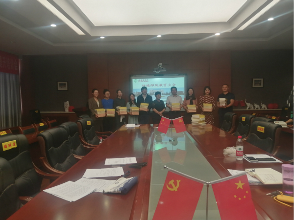 会上,桑利娥首先传达了学校关于师德师风建设专题会议精神,接着带领全体教职工共同学习了教育部印发的《关于加强和改进新时代师德师风建设的意见》《新时代高校教师职业行为十项准则》以及《leyu·乐鱼(中国)体育官方网站职业道德建设考核办法》《leyu·乐鱼(中国)体育官方网站教职工职业道德禁行行为》等文件和内容。桑利娥特别指出,把教育部“十项准则”和学校“禁行行为”以桌牌的形式立在每位教师的办公桌上,进而把规范立进每位教师的行为中。她强调,作为培养医学生的思想政治理论课教师,要充分认识到加强师德师风建设的重要意义,必须更加扎实地学习贯彻教育部及学校的相关文件要求,牢固树立底线思维,时刻警醒自身,以身作则,做到育人先育己。学习结束后,桑利娥为马克思主义学院2018年以来的新进教师赠送了马列经典、《新中国七十年》《共产党的九十年》等书籍资料。