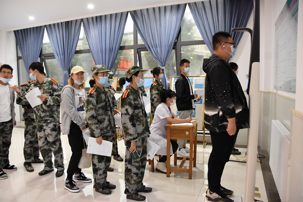 在校医院全体职工连续八天的努力下,体检工作圆满完成,共体检人数3154人。他们用亲切的微笑和话语叮嘱学生:刚来到新的环境要调整好自己的作息、饮食规律,用健康的体魄投入到军训和学习中去。(校医院 文/图 毛佩东)