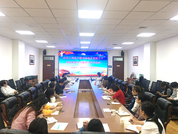 根据《机关三党总支关于开展第三个纪律教育学习宣传月活动的通知》要求,机关三党总支图书馆党支部积极部署安排,掀起本次纪律教育学习宣传的热潮。2020年9月28日上午,图书馆党支部在图书馆一楼会议室开展了第三个纪律教育学习宣传月系列活动,会议由党支部书记张湛睿主持,党支部全体党员参加了会议和活动。