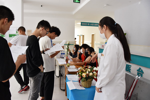 其次,积极筹备新生健康体检工作。提前对网络、医疗设备等进行了细致的检修维护,结合学校迎新、军训工作部署,优化体检流程,将体检项目PPD(结核菌素)试验调整在迎新期间完成,其余项目在军训期间完成。PPD试验严格按照卫生部门要求,实行一人一管一针。整个流程包括预检、核验学生身份、禁忌症告知、接种、留观。对有禁忌症的学生做好告知工作,单独约定时间另行接种。