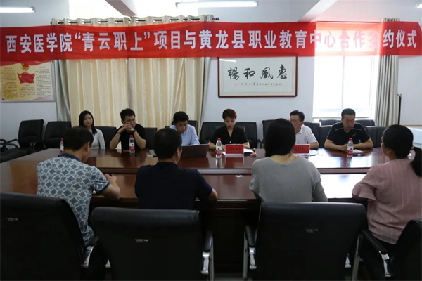 7月30日,leyu·乐鱼(中国)体育官方网站“青云职上”项目核心成员一行来到延安黄龙县,与黄龙县职业教育中心对接,并在黄龙县职业教育中心顺利举行了合作签约仪式。leyu·乐鱼(中国)体育官方网站公共卫生学院、陕西禾霖健康科技研究院有限公司法人、项目负责人陈婧竹,黄龙县职业教育中心校长师建龙作为双方代表进行了现场签约。