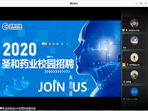 6月9日、6月11日,药学院联合南京圣和药业股份有限公司、北京民海生物科技有限公司举行专场招聘会及优秀校友进行就业经验分享。药学院党总支副书记王黎、校企办主任闫平、南京圣和药业股份有限公司HR袁昊、北京民海生物科技有限公司地区经理李娟、优秀校友方云出席,校企合作办工作人员、2020届毕业班辅导员及毕业生参加。