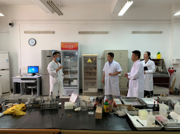张光伟副书记强调了实验室安全的重要性,重申了危化品的分类存放及出入库记录、实验室日常安全检查记录和仪器设备运行管理等要求,并现场给予指导;要求做好实验室消杀。