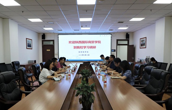 2020年5月26日下午,陕西国际商贸学院在信息化中心主任张海的带领下,一行四人莅临我校,就我校在教育信息化平台搭建及运行管理等方面的工作进行考察调研。我校信息技术处处长张成及相关工作人员热情接待了同行们。