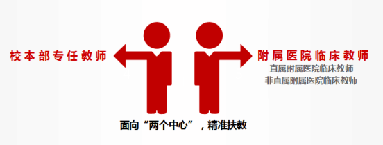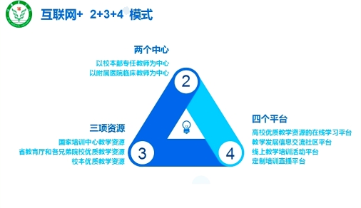 两个中心即“以校本部专任教师为中心”、“以附属医院临床教师为中心”,其中附属医院临床教师包含直属附属医院临床教师和非直属附属医院临床教师。教发评中心牢牢抓住这两支教师队伍,面向两个中心全面开展线上教学培训相关工作,精准扶教,全方位提升两支教师队伍的线上教学能力,确保覆盖我校整体师资队伍。