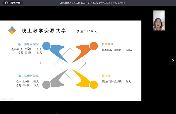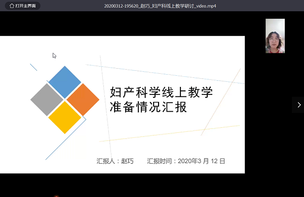 首先,课程负责人赵巧副教授从线上教学资源准备、教学平台遴选、教学资源共享几个方面汇报了线上教学的前期准备情况,目前依托超星泛雅平台妇产科建设线上SPOC课程4门,线上教师75人,在线学生1150人。精心准备的线上教学资源如何引导学生品出其中的“味道”是我们急需破解的共性问题。随后,大家围绕此话题及近期线上教学的困惑展开激烈的讨论。一附院妇产科教研室主任陈蕊分享了线上教学的优势与不足之处,优势:①课前预习资料线上发放;②可直播回看,便于学生复习;③典型病例手术直播拓展学生视野;不足:学生反馈不如面对面,只能通过弹幕了解学生的反馈,不能看到学生的表情。魏琳老师通过直播平台的测试与使用,推荐比较流畅稳定钉钉线上直播教学平台。二附院妇产科教研室主任王燕经验分享时谈到初期采取自制录课方案,存在文件大无法上传教学平台,时间把控和互动问题:通过集体备课,由于二附院学生多数课程使用腾讯会议,为了不增加学生负担,以学生为中心,目前采用腾讯会议结合超星学习通互动的教学方案,取得一定成效。曹蕾和加秋萍老师也分享了线上教学的体会,腾讯会议屏幕共享,操作简单,但是不能生成回放;通过学习通发起签到、选人、抢答等教学互动激活课堂,学生反映好;主要困惑学生线上作业完成情况不理想,可能与学生线上作业任务过重有一定关系,可适当调整。最后,校督导曹平教授对本次研讨进行了点评。充分肯定了研讨的形式、氛围和效果。同时也提出了几点建议:①注重医学教育的特殊性,即社会性、服务性、实践性;②及时更新教育理念,变被动为主动;③线上教学有利有弊,扬长避短服务教学。