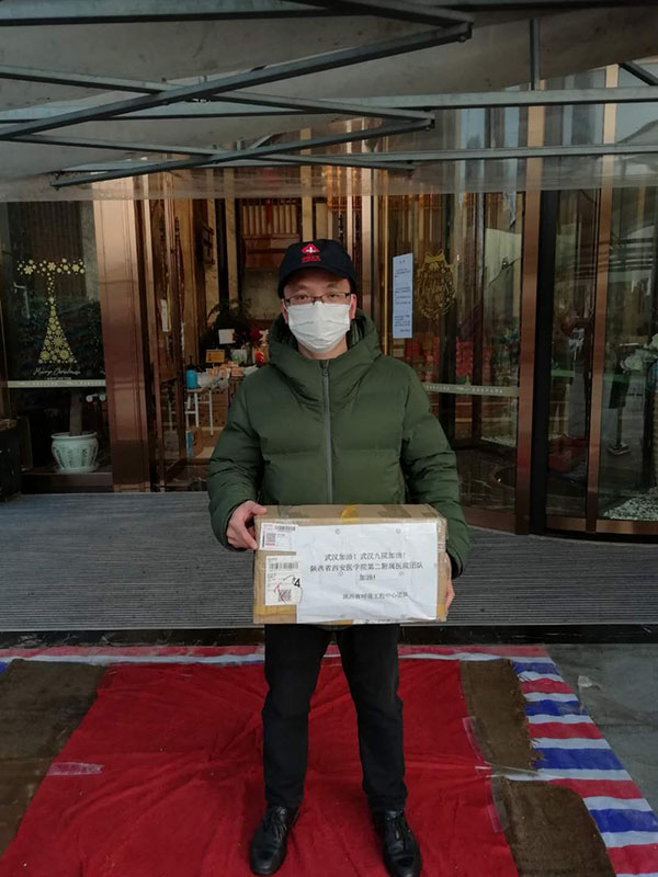 我校第二附属医院第一批援武医疗队王耀伟医生携捐赠口罩赴医院