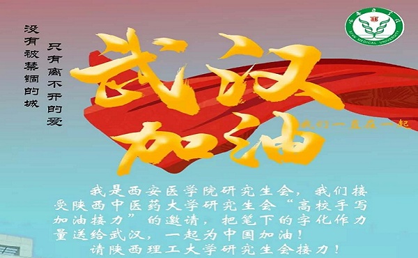 除参与疫情防控实际工作外,我校研究生还在全国各地为湖北、为中国加油祝愿;参与高校手写祝福,传递祝愿的接力活动,以淳朴的语言寄托祝福;积极参加志愿活动、捐款捐物。以不同的方式贡献自己的一份力量,体现了新时代医学生的爱国情怀和责任担当。(研工部 文/荀丹丹 图/李宇晨)