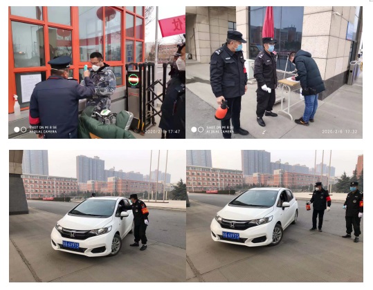 保卫人员严格入校人员登记、体温检测、车辆消毒