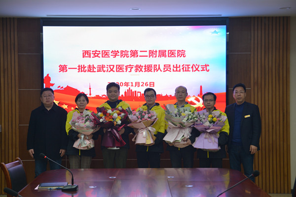 今天,2020年1月26日,大年初二上午,我校第二附属医院举行了第一批赴武汉医疗救援队员的出征仪式。我校第二附属医院的五名医疗队员即将出征武汉,执行救援任务。他们是呼吸科副主任医师周立、主治医师王耀炜、主管护理师白兰、重症医学科主治医师骆梦华、护理师李永恒。